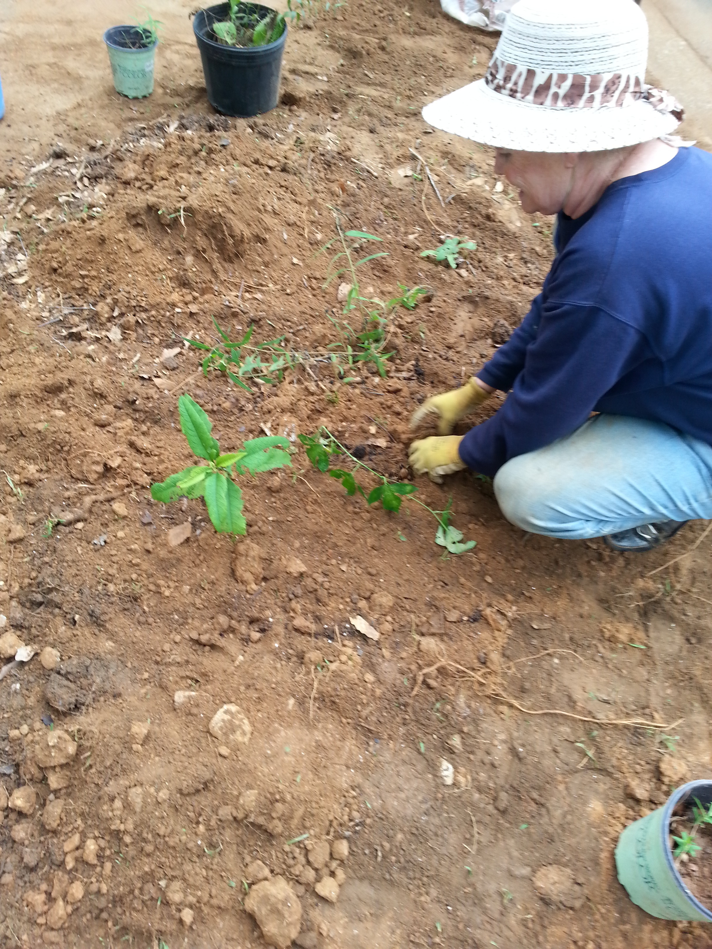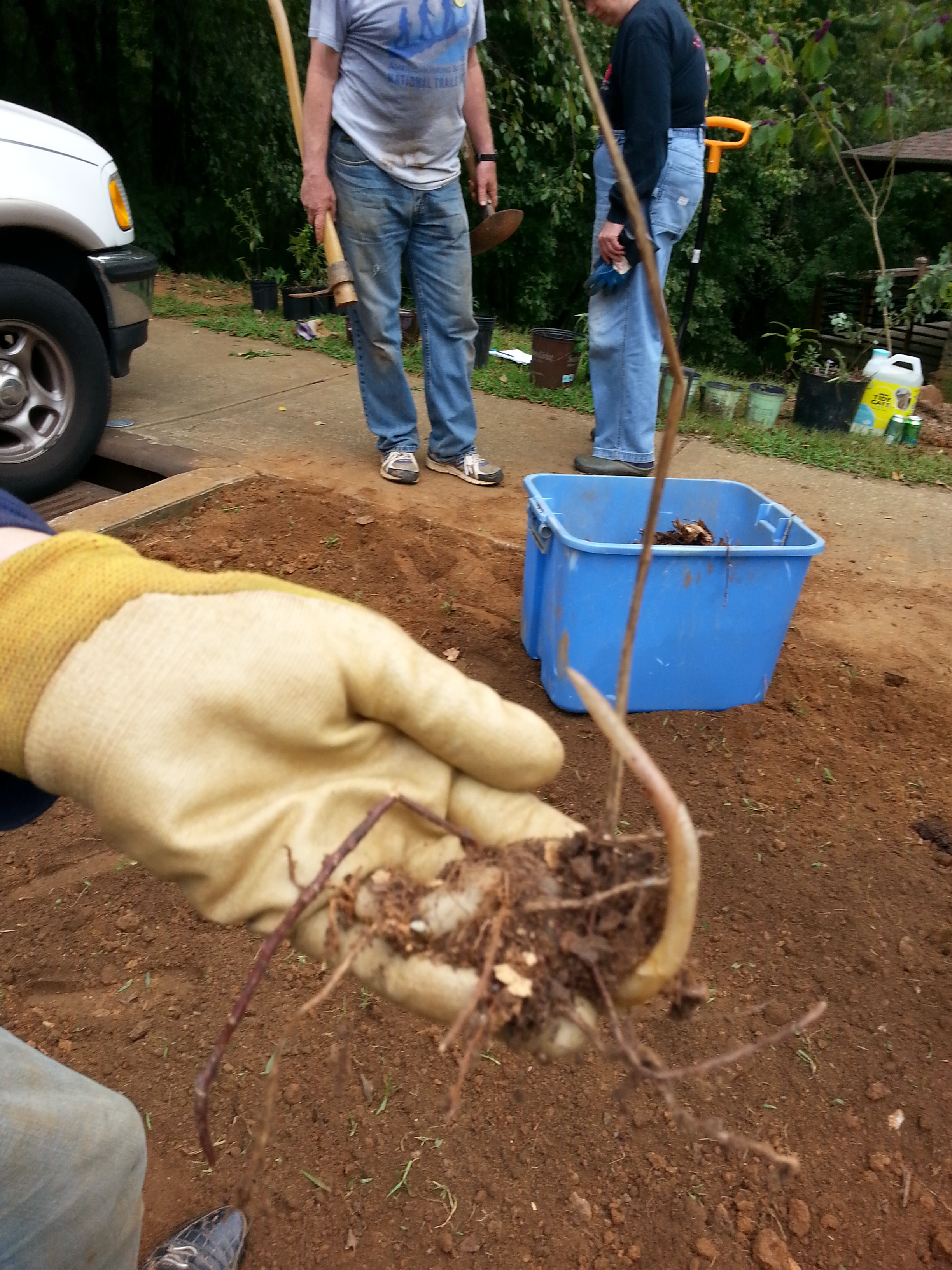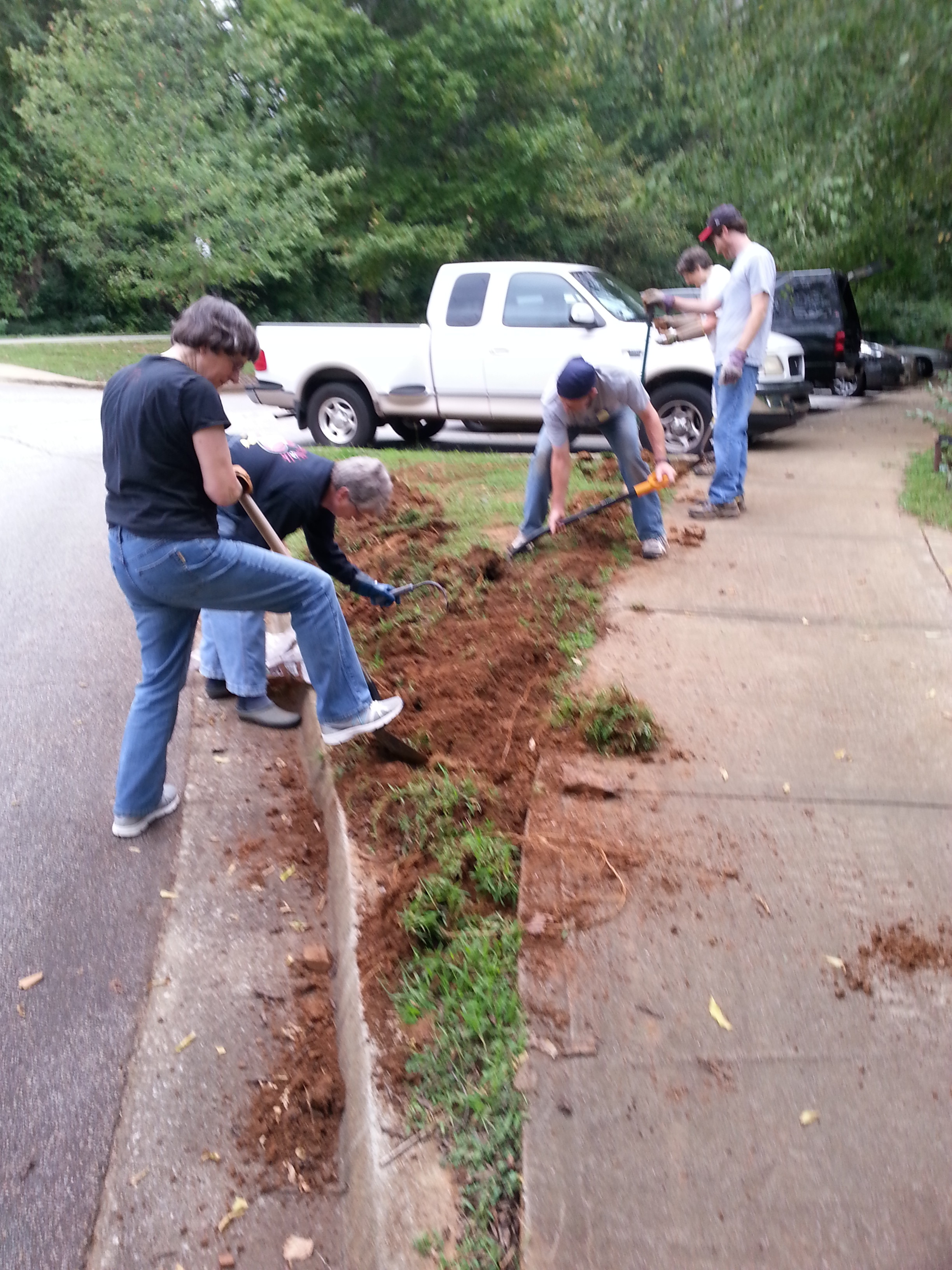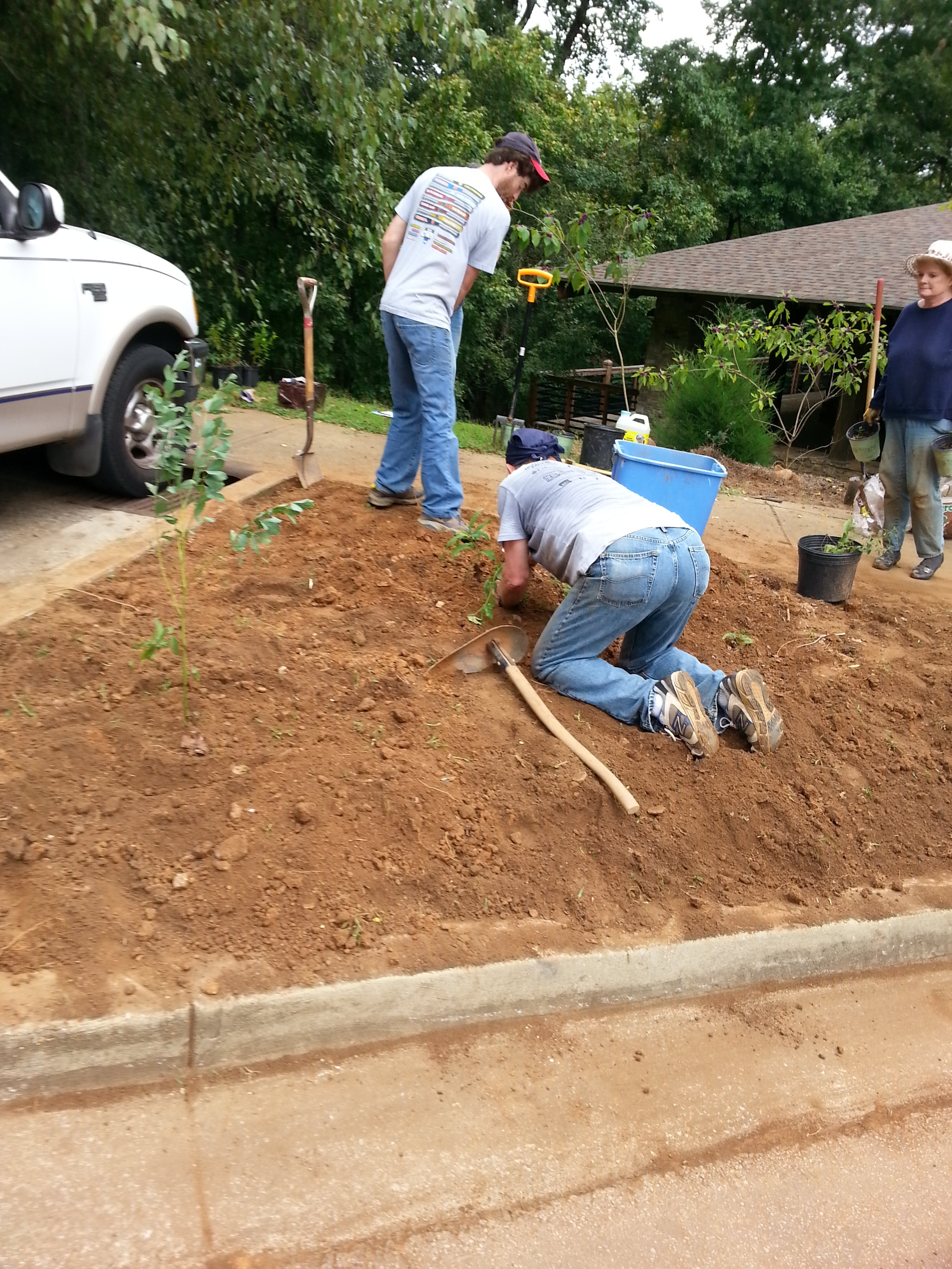 The soil was challenging, comprised of a mix of red clay and small rocks covered with a thin layer of topsoil, and carpeted with crabgrass. Using a combination of forks and shovels, the volunteers tilled the area.