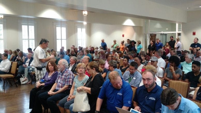 On Aug. 2, a town hall meeting was held at Brawner Hall to inform locals of the proposal. An overflow crowd showed up, causing the meeting to start 15 minutes late so extra chairs could be brought in.