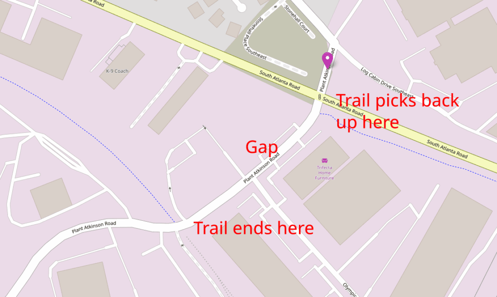 I also contacted the county to ask about the progress of getting the gap filled, and received the following reply from Cobb’s Communications Director Ross Cavitt: