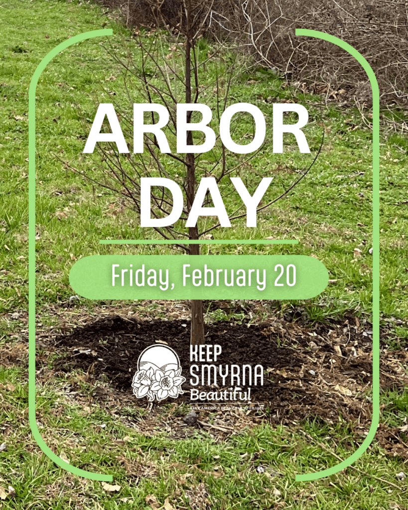 Next month, Keep Smyrna Beautiful will host a ceremonial tree planting to celebrate Arbor Day on Friday, February 20, 2026, from noon to 12:30pm just outside the Smyrna Community Garden located in North Cooper Lake Park. This event is open to the public, and seedlings will be available while supplies last. We will plant a selection of redbud and fruit trees.