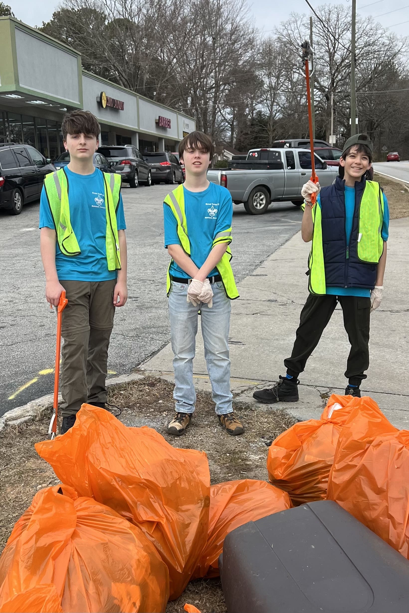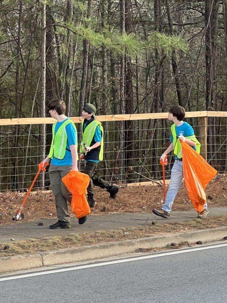 Avid community volunteer Barry Krebs submitted the following report with photos about the cleanup of Cooper Lake Road by Boy Scout Troop 22, with help from the South Cobb Lions Club: