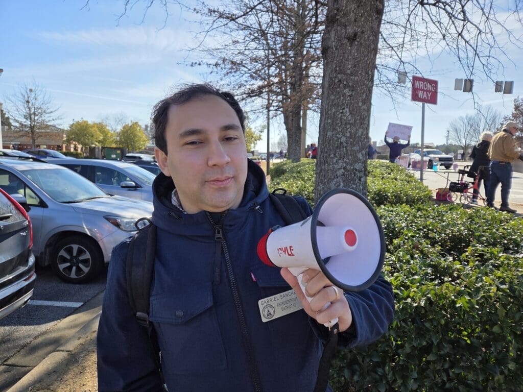 Gabriel Sanchez, the state representative from Smyrna-area Georgia House District 42, was at the event with a megaphone in hand.