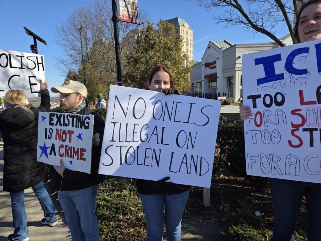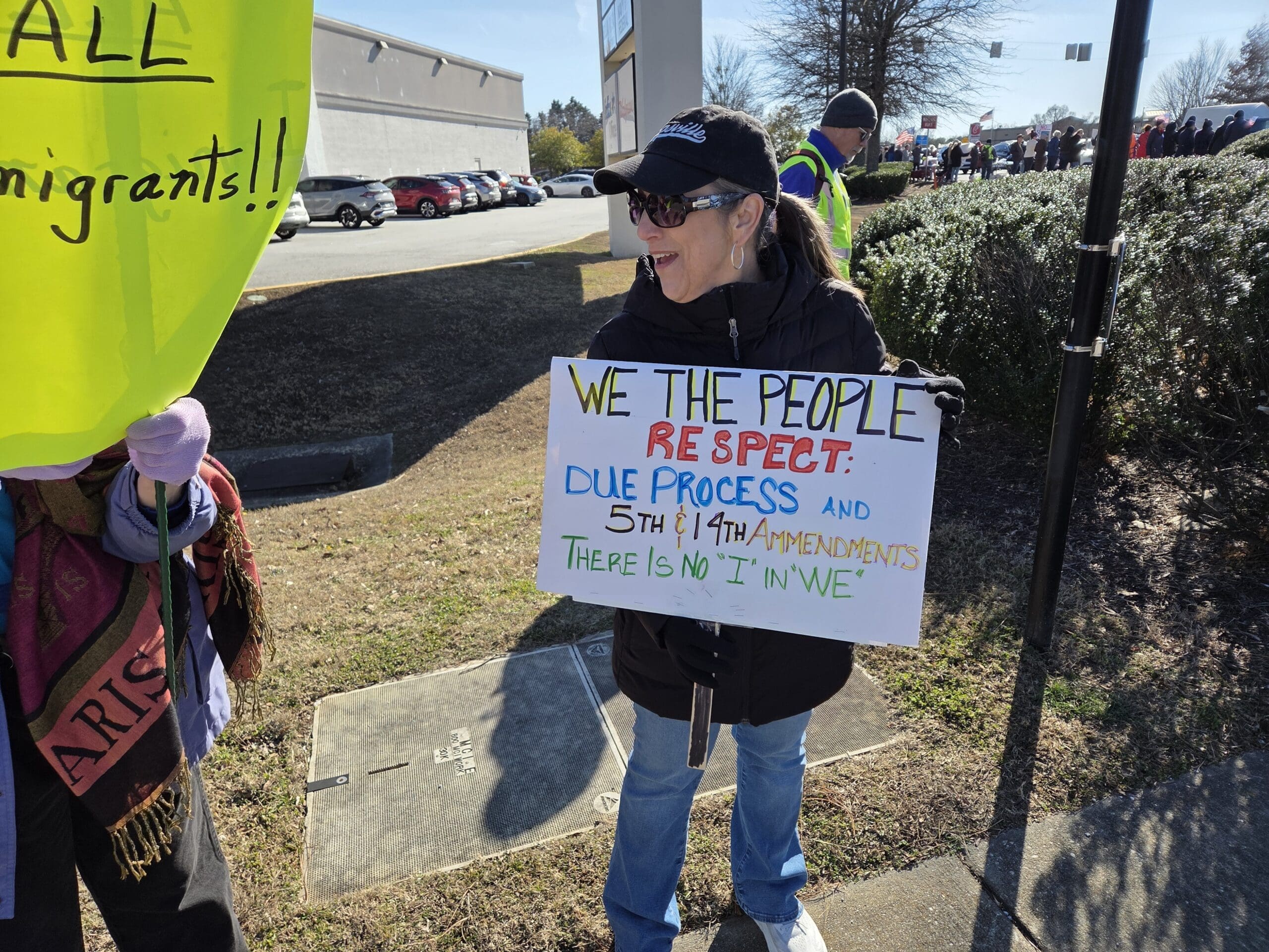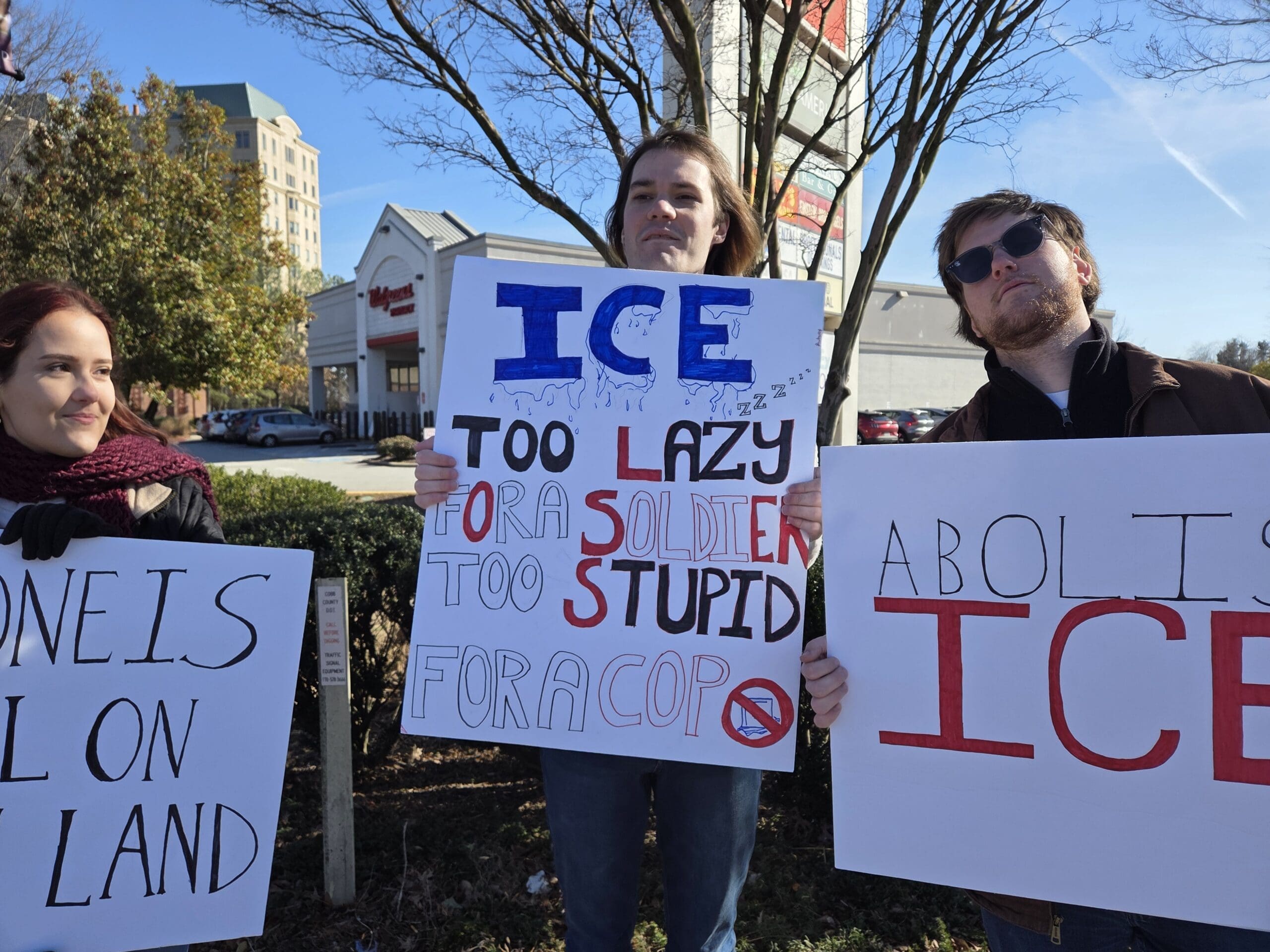With chants of “No ICE! No fear! Immigrants are welcome here!,” Indivisible Cobb, along with other progressive groups, held a rally Saturday at the intersection near Home Depot’s corporate headquarters in the Cumberland/Vinings area.