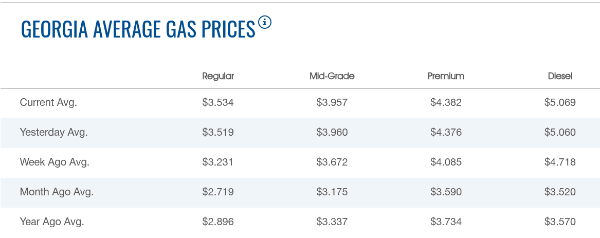 According to AAA, gasoline prices in Georgia reached an average cost of $3.534 per gallon for regular unleaded.
