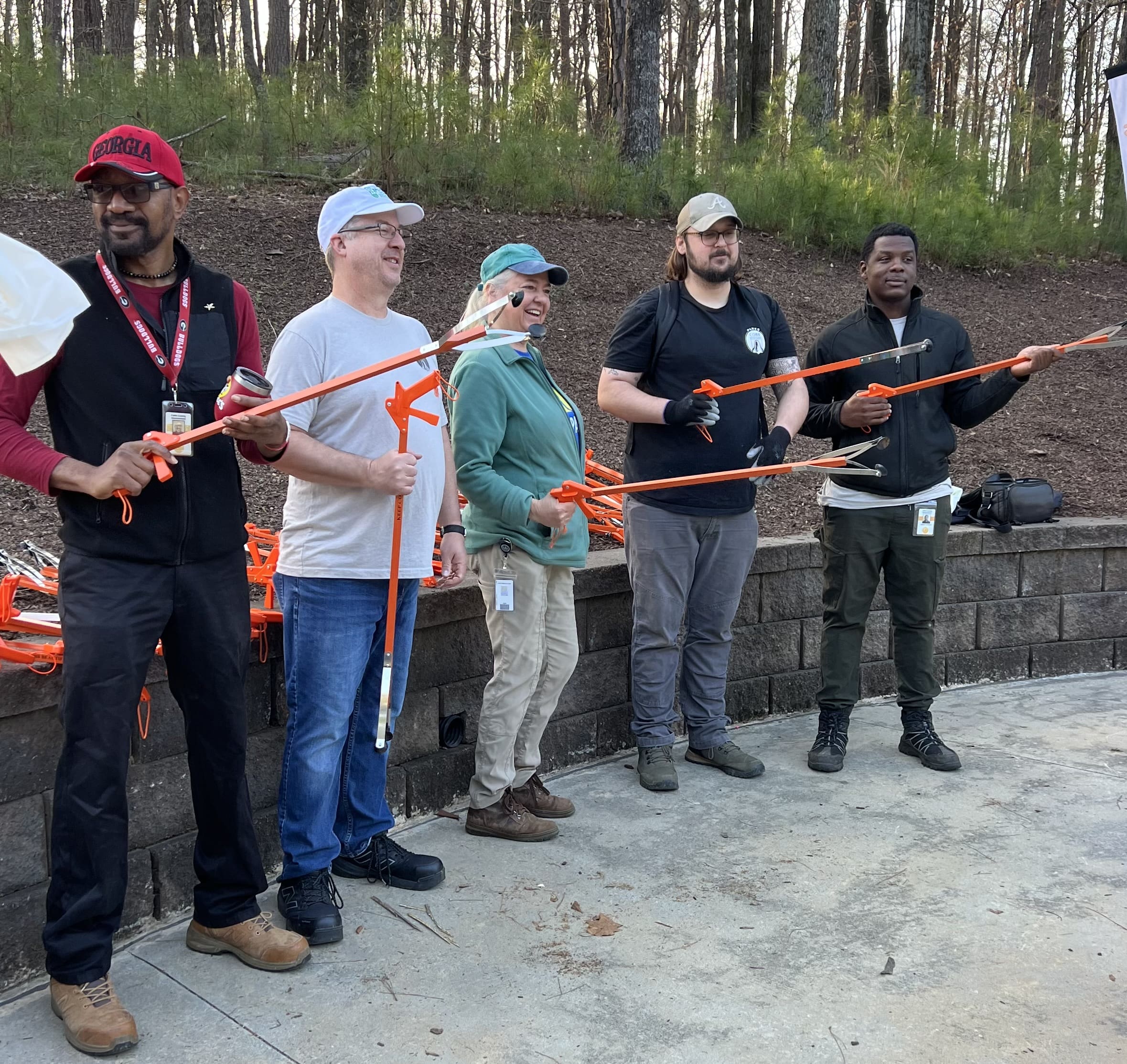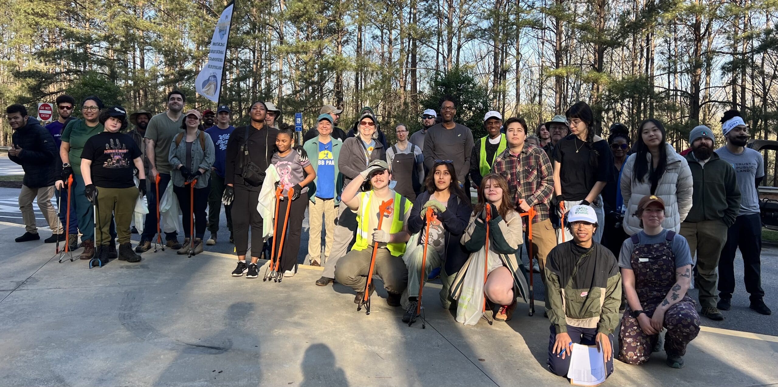 Group photo of participants in "Sweep the Hooch" river cleanup in Discovery Park in Mableton