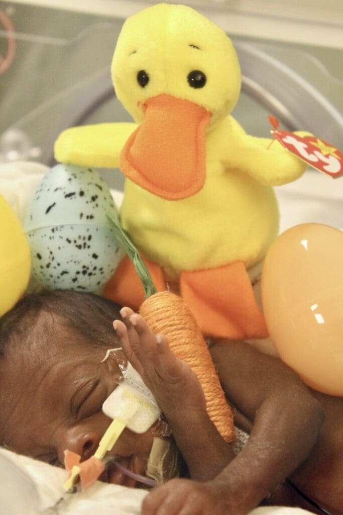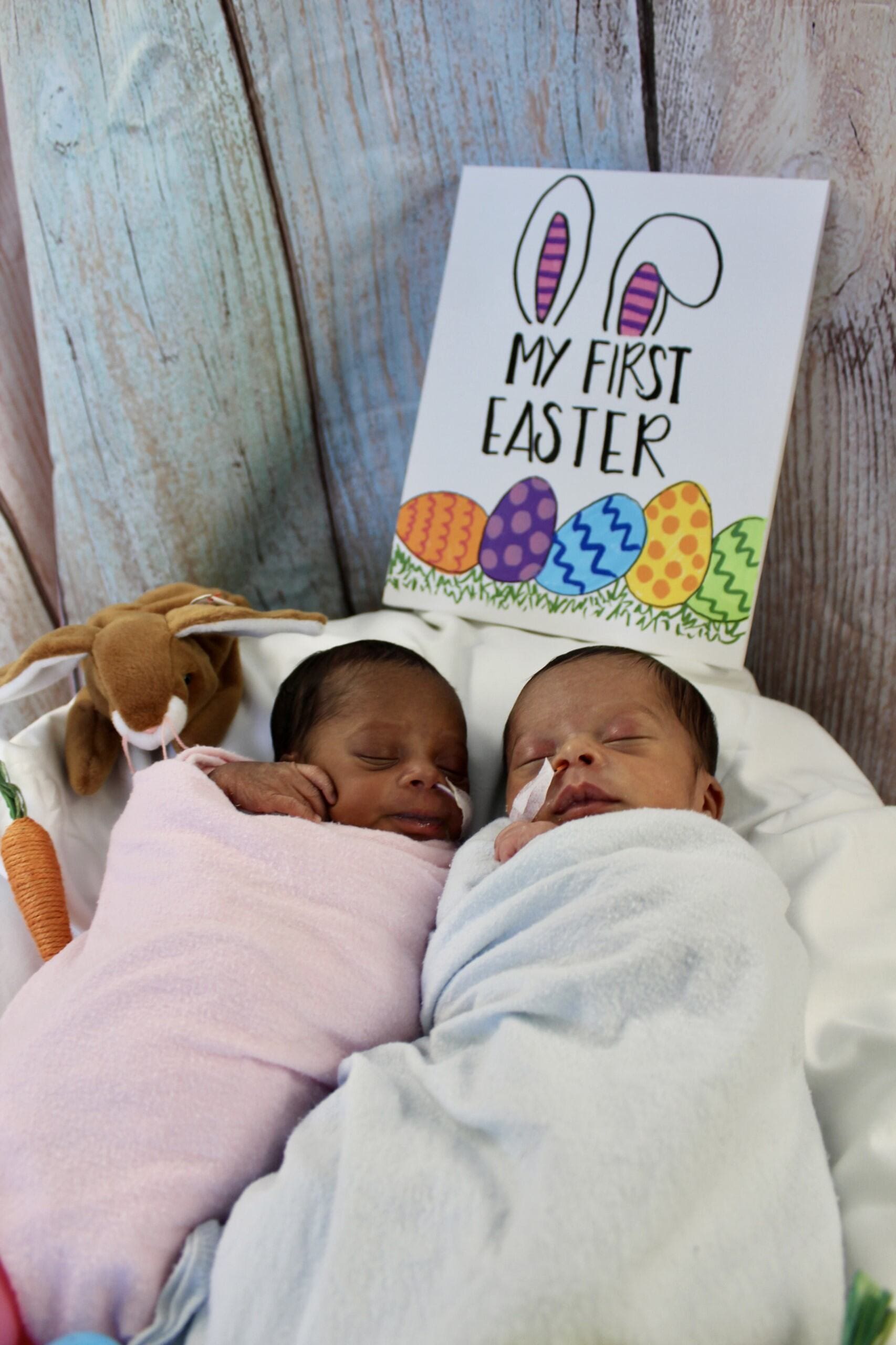 Wellstar Health System distributed the following Easter celebration photos from the Wellstar Cobb Medical Center NICU (Neonatal Intensive Care Unit):