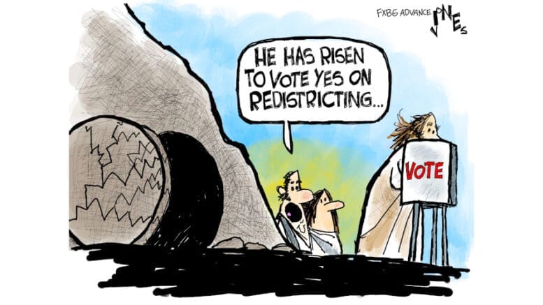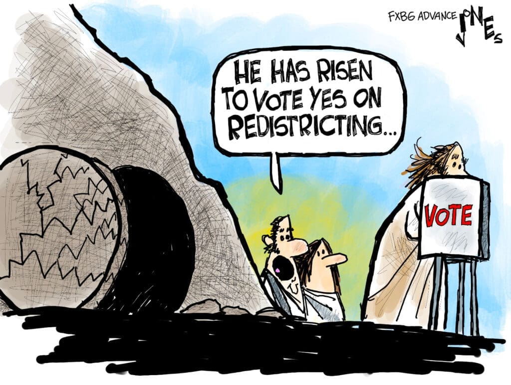 Political Cartoon by Clay Jones on Virginia’s Redistricting TOPICS:Clay Jonespolitical cartoon Posted By: Nor April 7, 2026 This cartoon first appeared in the Fredericksburg Advance
