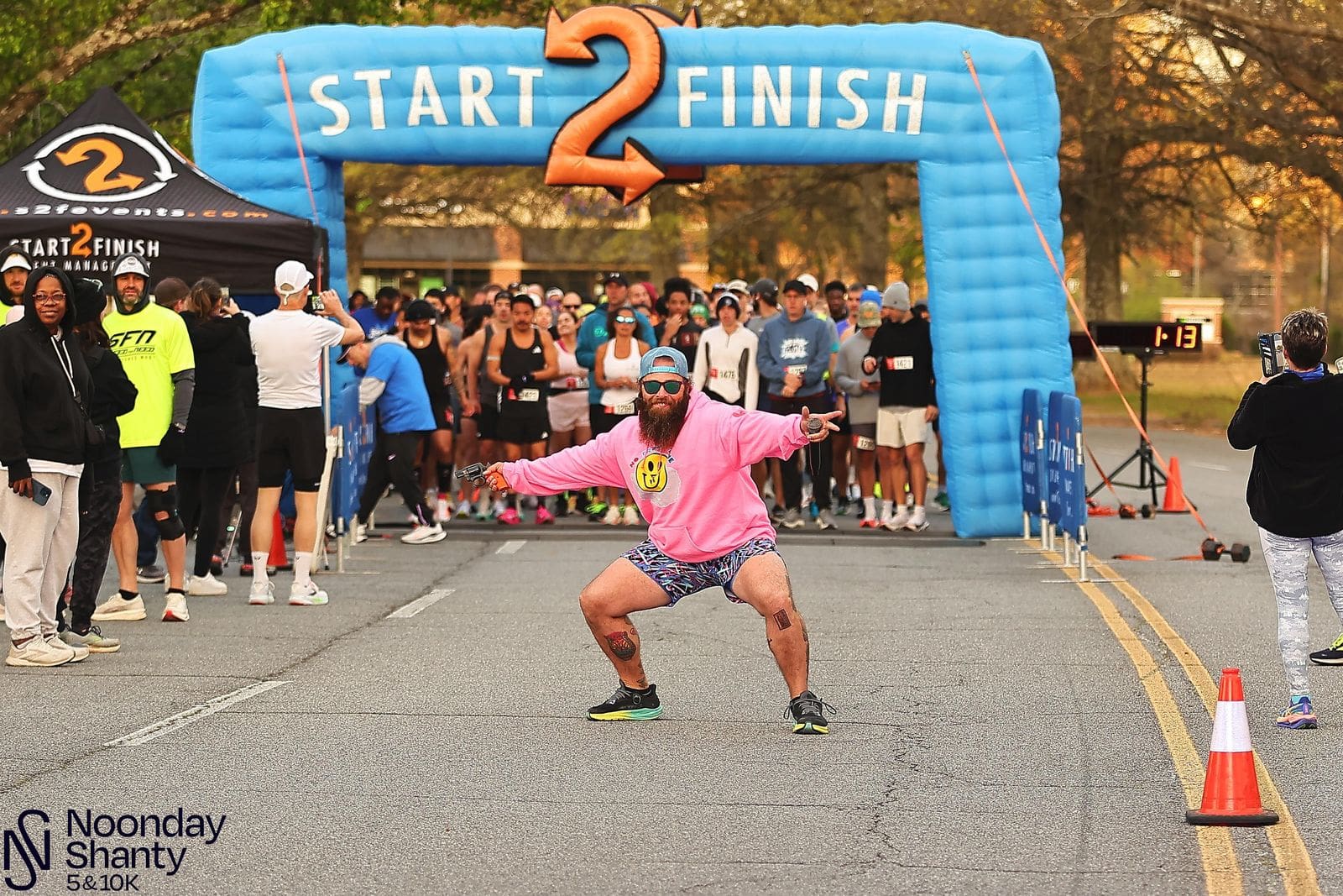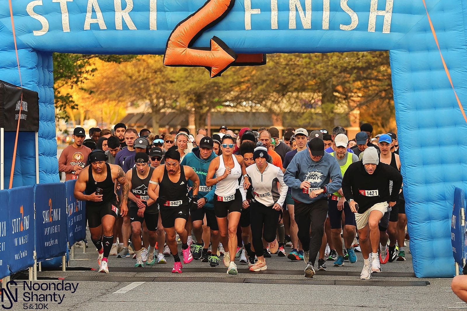 Crowded start/finish line at the Noonday Shanty 5K/10K